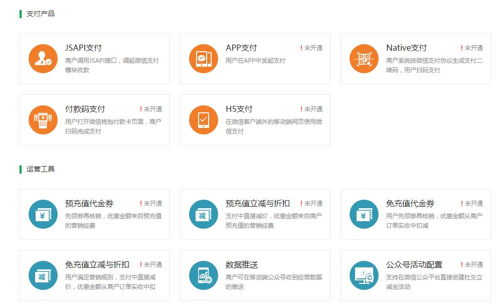 3、 登錄微信支付商戶平臺-產(chǎn)品中心,開通企業(yè)付款。若無法開通請耐心等待,商城只需要有正常交易即可。以上功能未開通的話,是無法把錢轉(zhuǎn)到個(gè)人微信及個(gè)人銀行卡。只能存放在商戶號里或自動提現(xiàn)到對公帳號