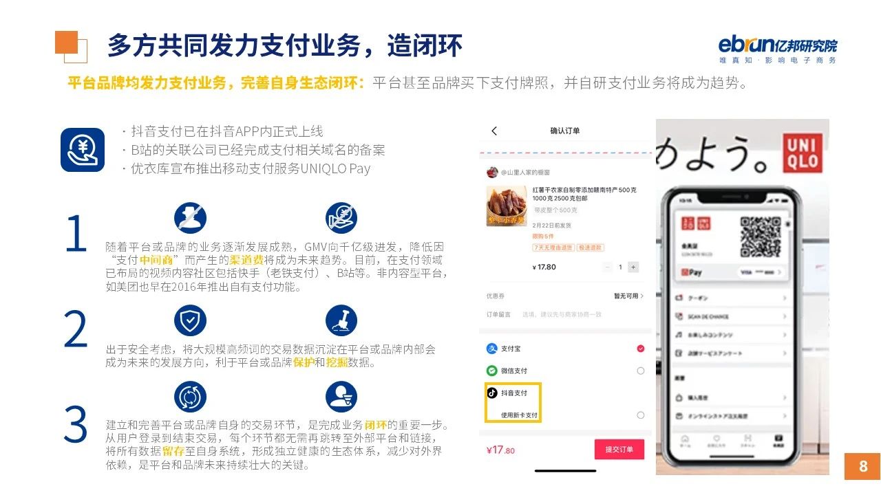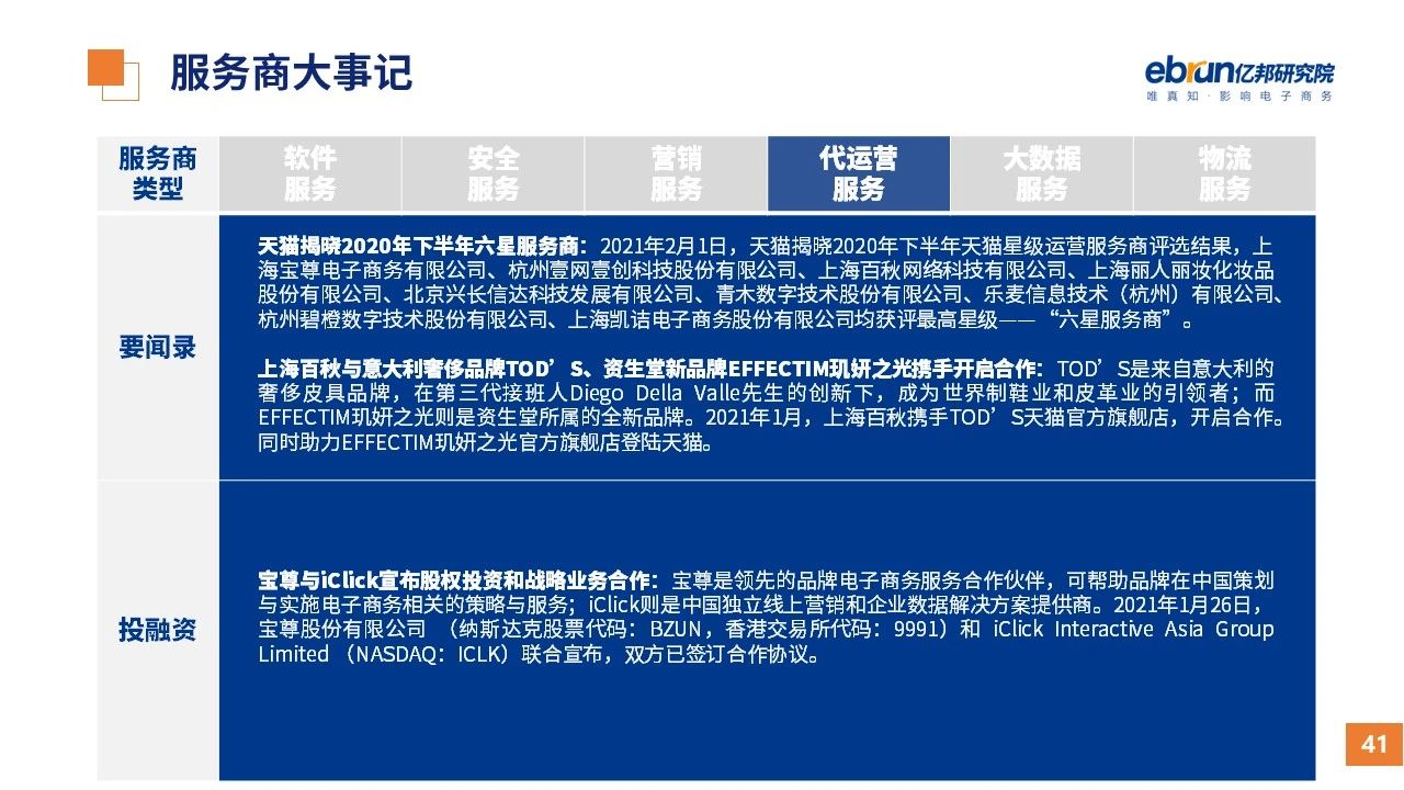 縱觀2021年1月,各平臺豐富自有生態(tài)布局,如淘寶直播(點淘)加入短視頻模式、騰訊重押視頻號、快手加碼電商和小程序、抖音推出支付等;視頻內(nèi)容成為各平臺未來重點發(fā)力方向;“九不得”新規(guī)發(fā)布后社區(qū)團購仍熱情不減;國家和市場對互聯(lián)網(wǎng)巨頭和電商相關(guān)消費加大監(jiān)管力度……你信和不信,你知道和不知道的,都在這份億邦動力研究院正式發(fā)布的